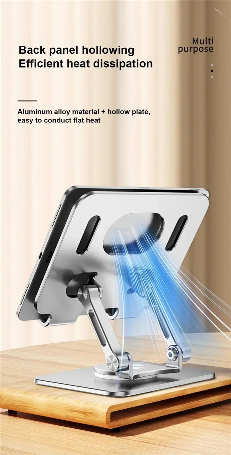 5. Hollow heat dissipation design: Hollow heat dissipation design, good heat dissipation performance. The aluminum material itself has the heat absorption function, which helps to naturally reduce the temperature of the tablet phone. The hollow design provides more space for air flow, which can effectively dissipate heat and prevent the flat panel from overheating, prevent the stuck machine from crashing, and cool down your equipment. The tablet holder is compatible with all 4.7-12 inch tablets/phones.