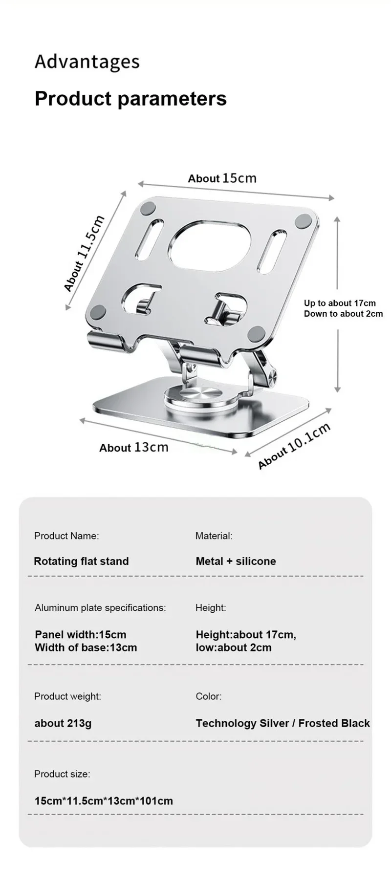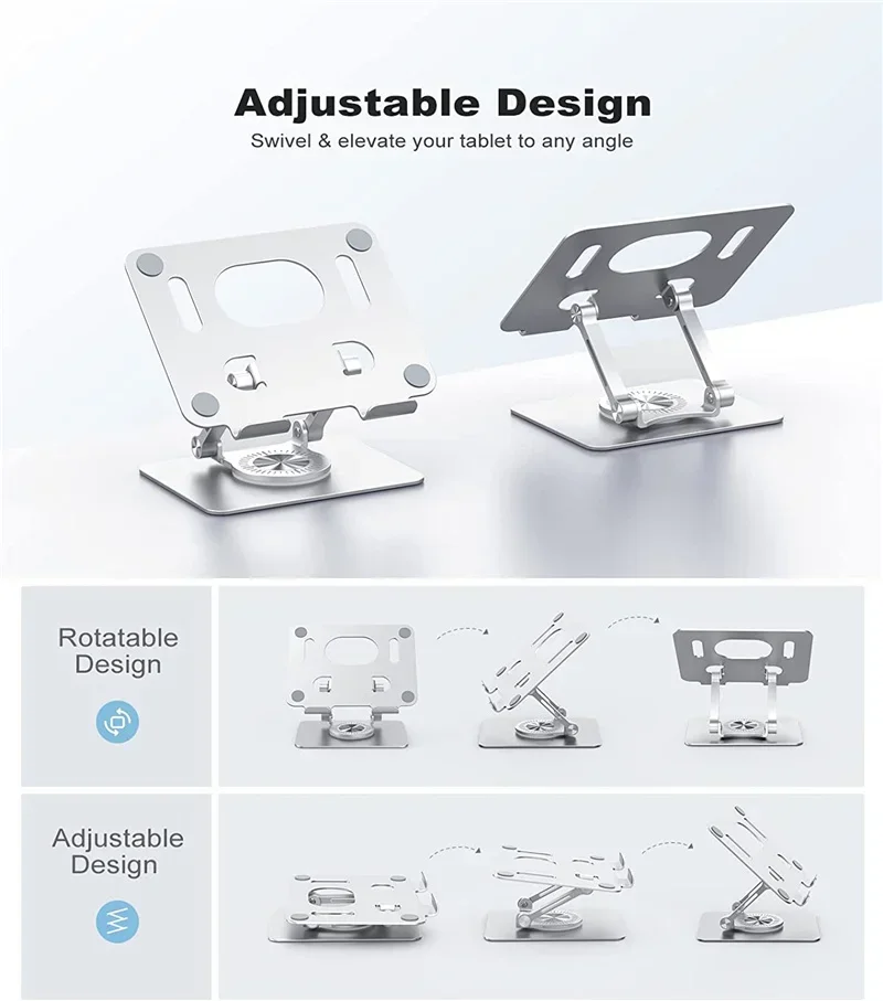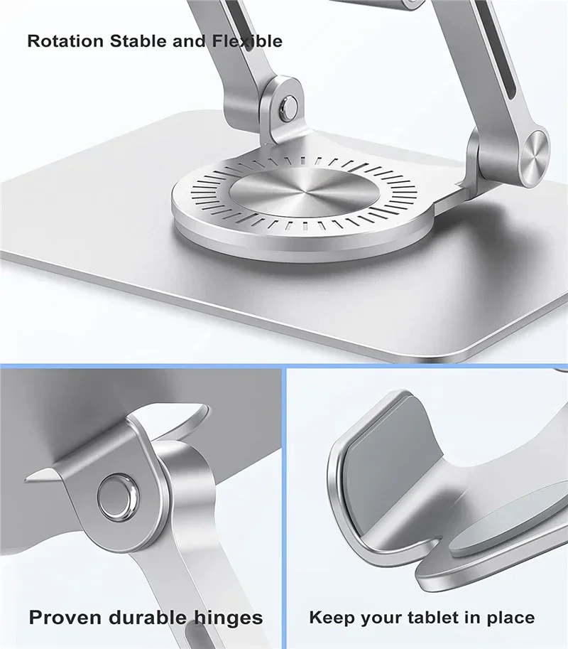 2. Stability and protection: The rotary tablet support is made of thickened aluminum alloy with smooth edges, which can protect the computer from scratches. A highly durable silicone pad is provided to ensure a close connection with the desktop, and your tablet is firmly fixed in place without fear of shaking and slipping.