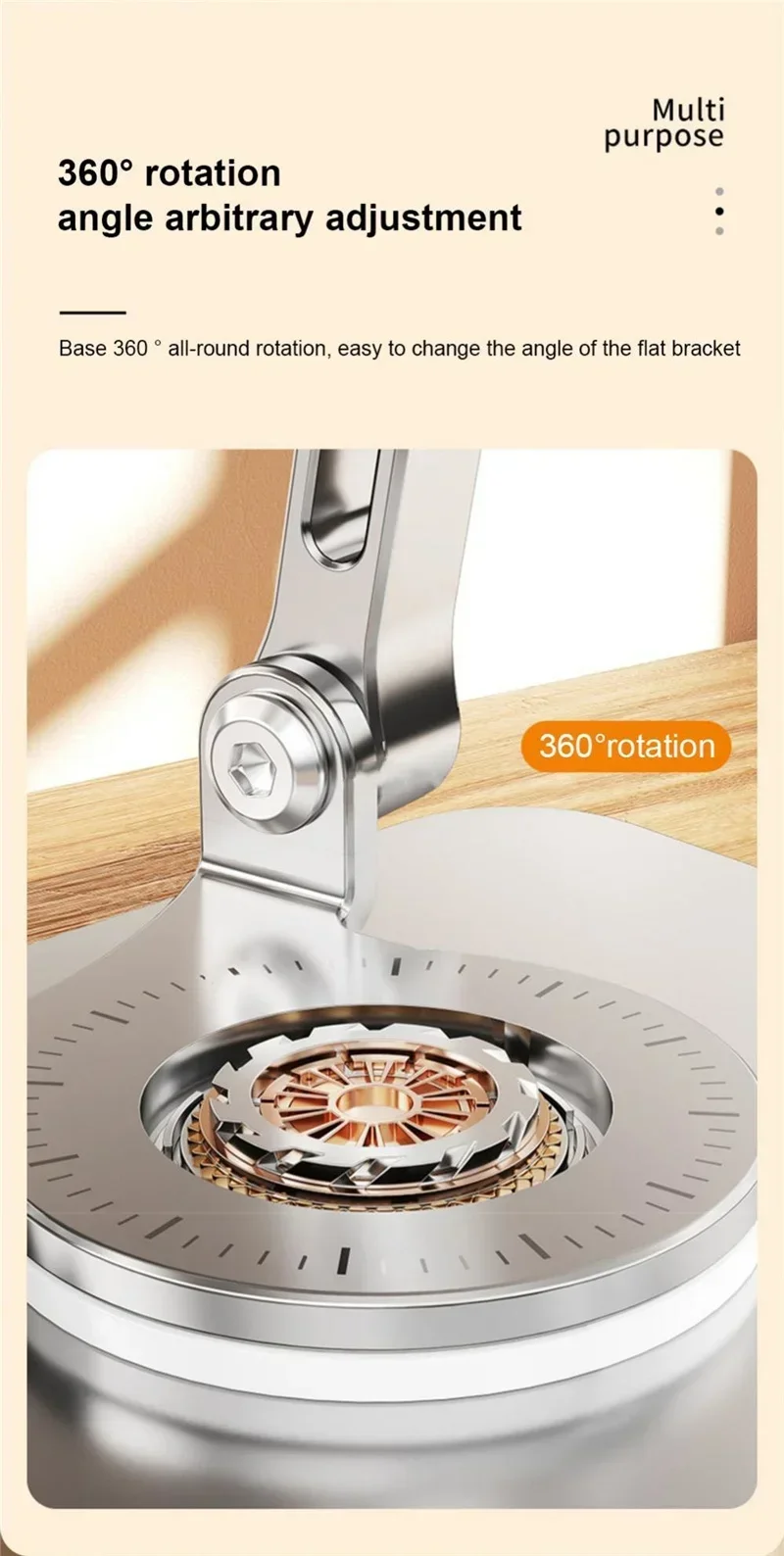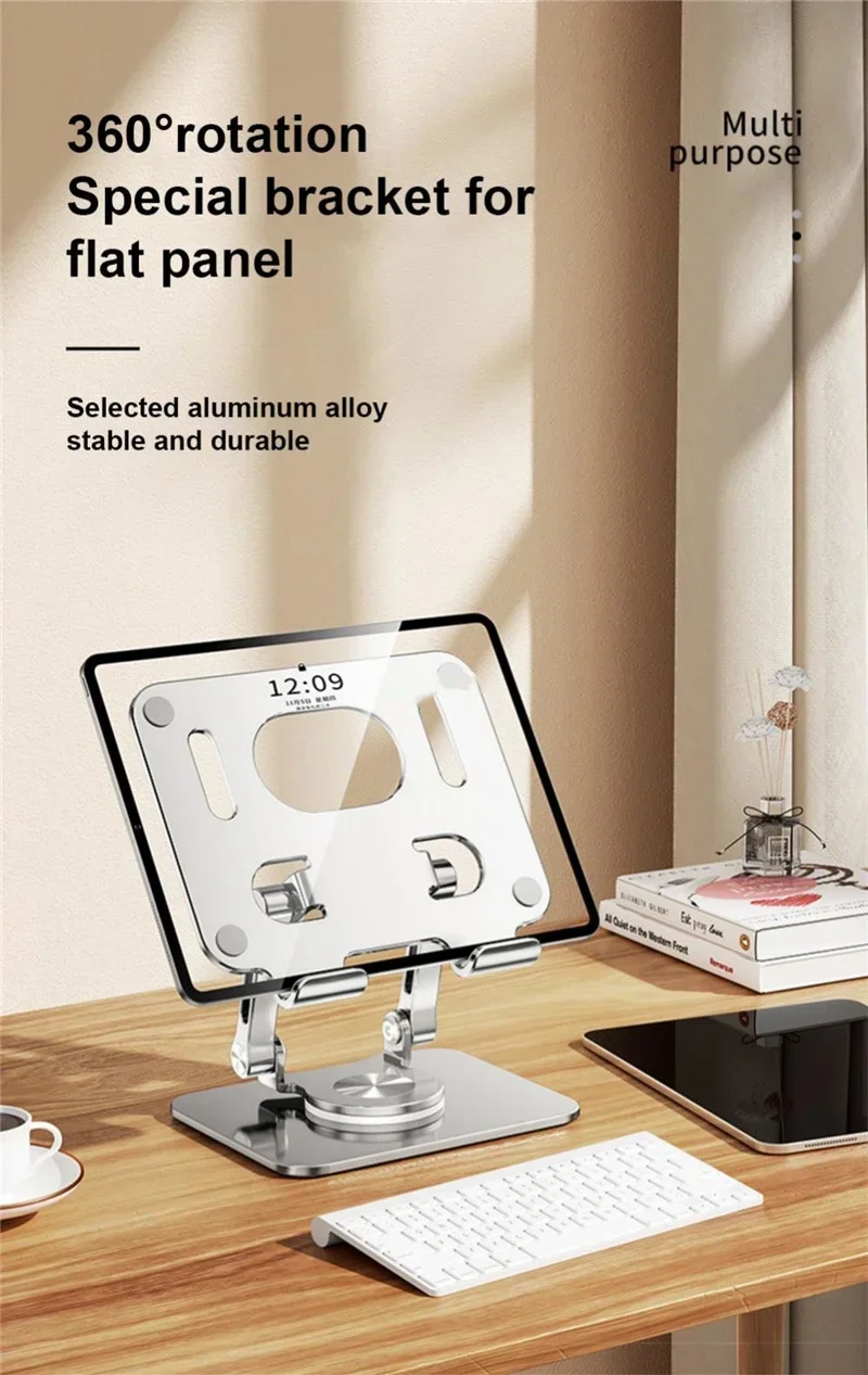 1. 360 ° rotation: It is equipped with a large 360 ° rotation chassis. The two axes are connected to the base, making the rotation more flexible. The bracket allows you to rotate the tablet to any angle.
