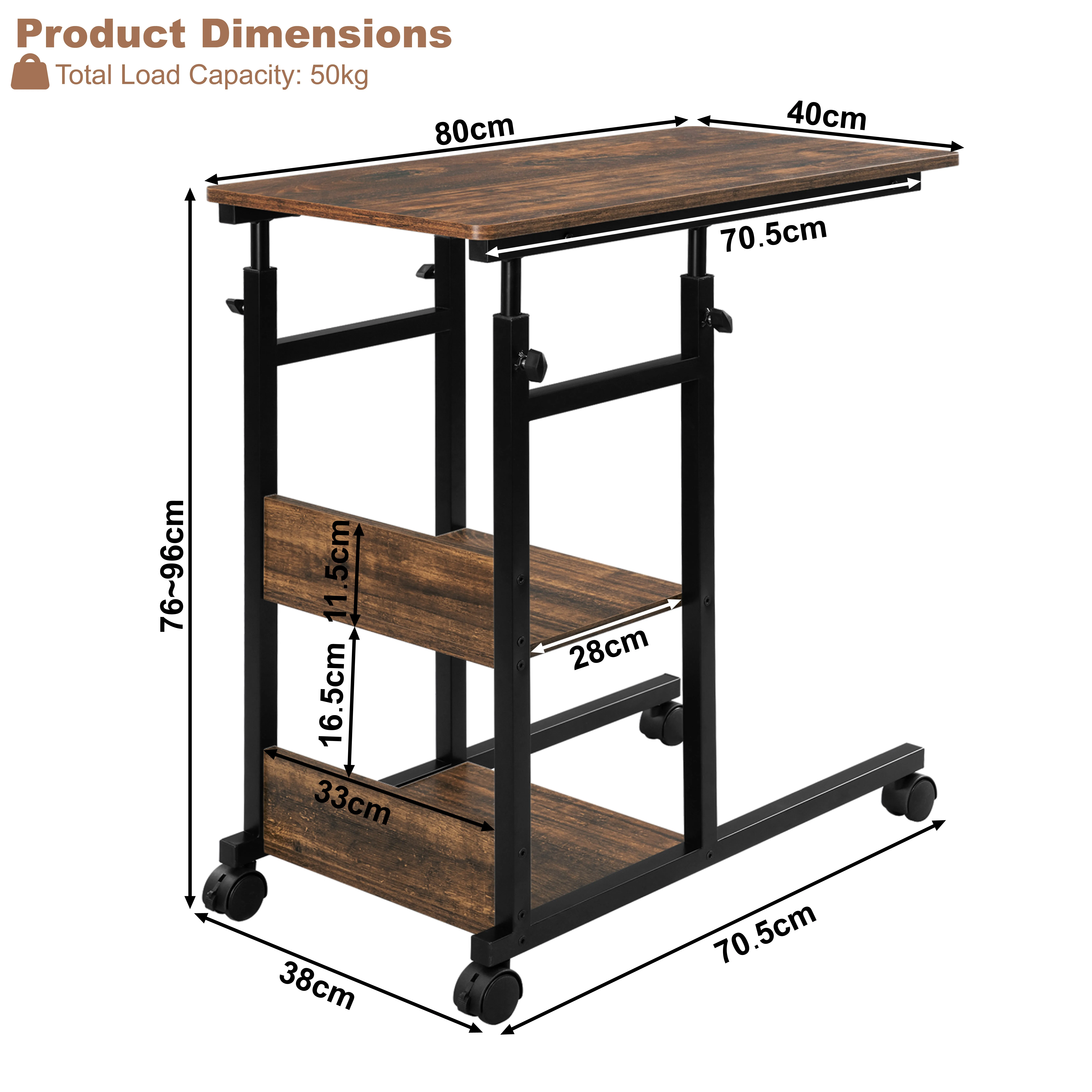 Size: 80 x (76-96) x 40 cm