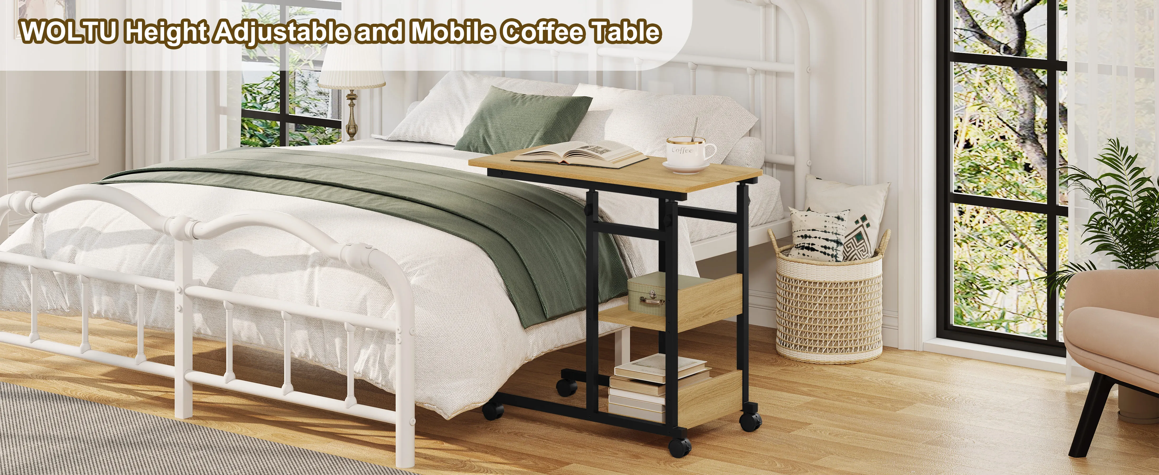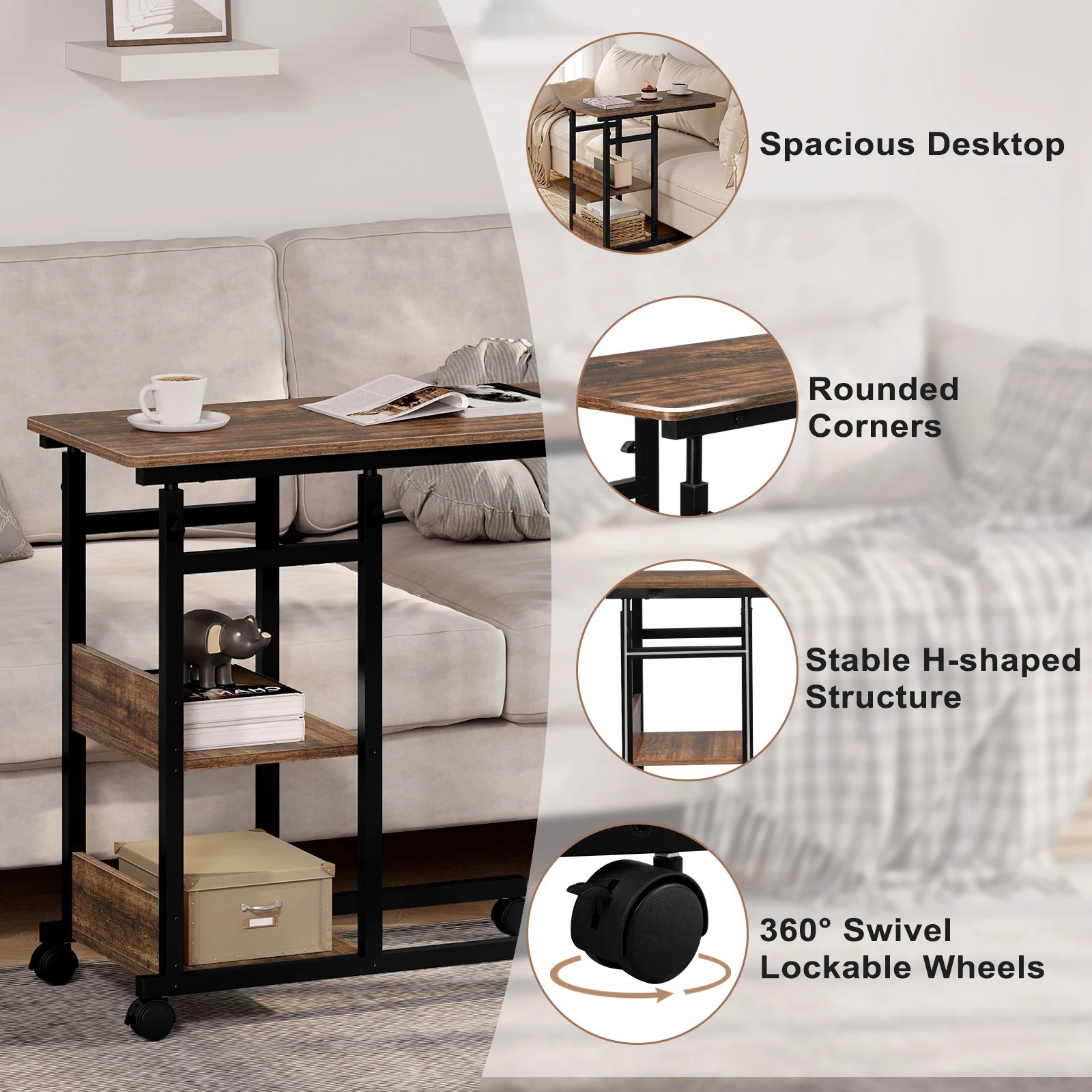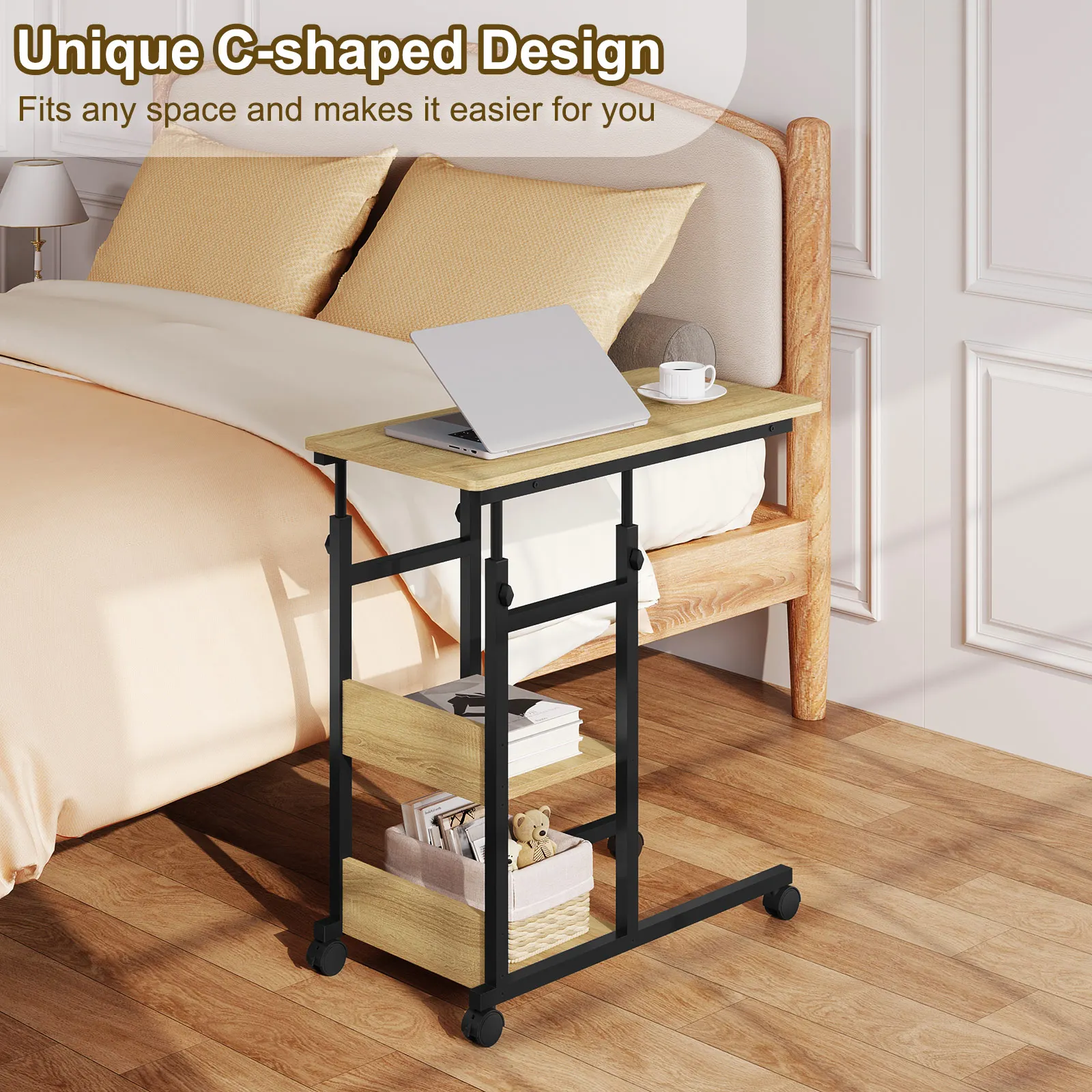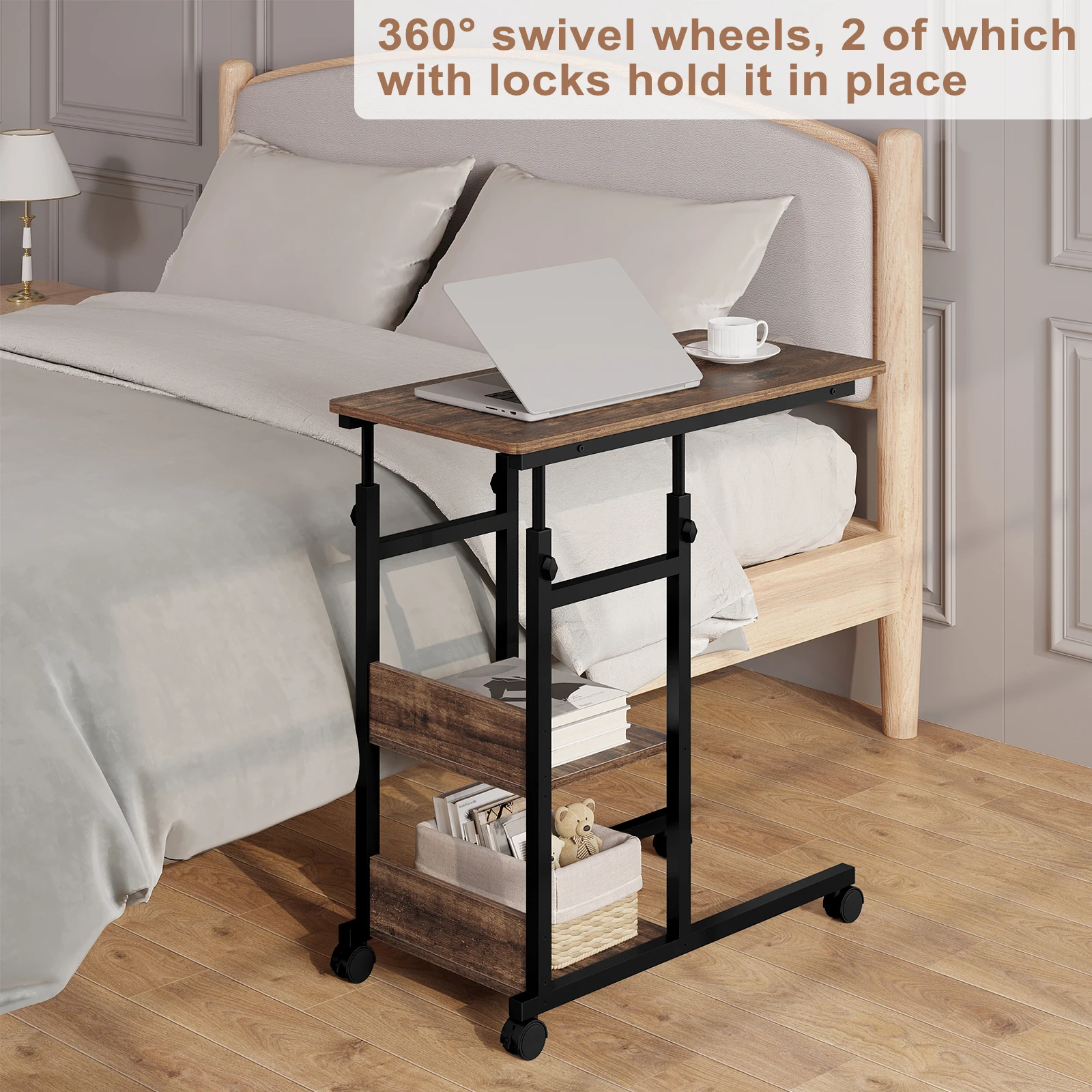 Adjustable Side Table with Wheels for Living & Bedroom